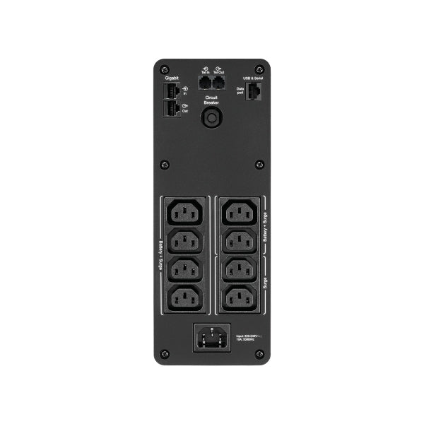 * Tomas de salida con protección de batería y contra sobretensiones Respalde y proteja el hardware y los datos durante cortes del suministro, sobretensiones y sobretensiones transitorias.